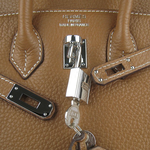 Hermes Birkin 25cm Bolso 6068 café claro plata