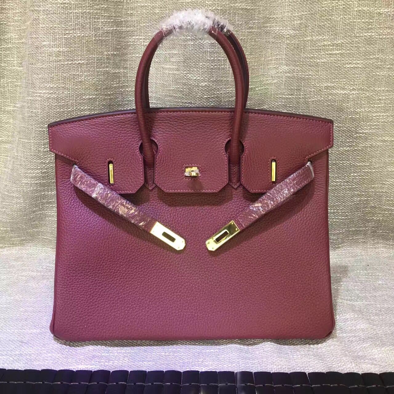 Hermes Birkin 30cm Togo cuero Bolso burdeos oro