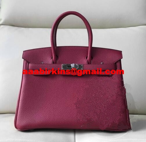 Hermes Birkin 30cm Togo cuero Bolso burdeos plata