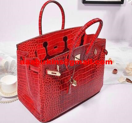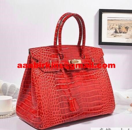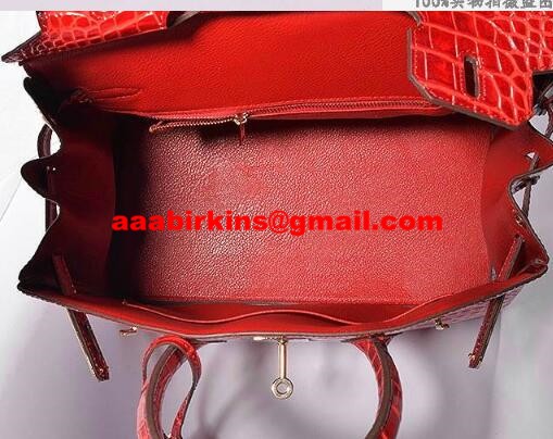 Hermes Birkin 35cm Bolso Cocodrilo Cuero Oro Rojo