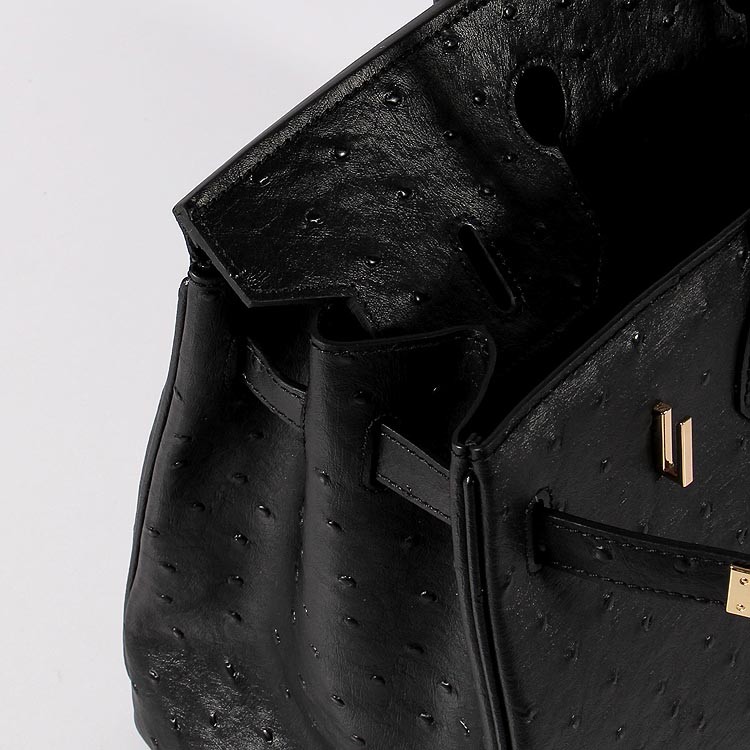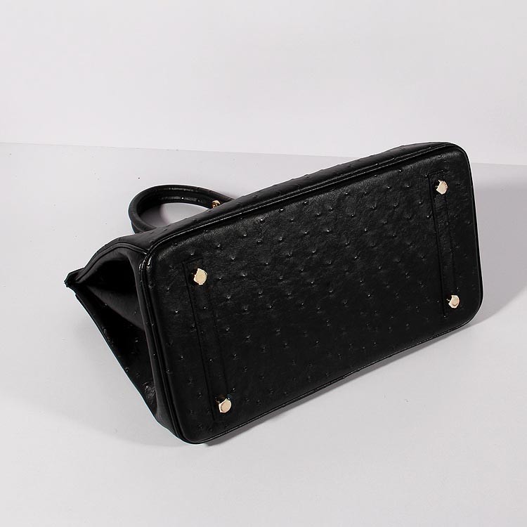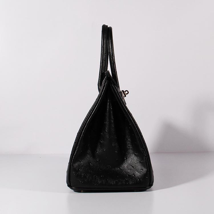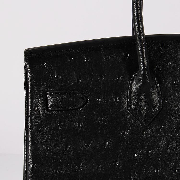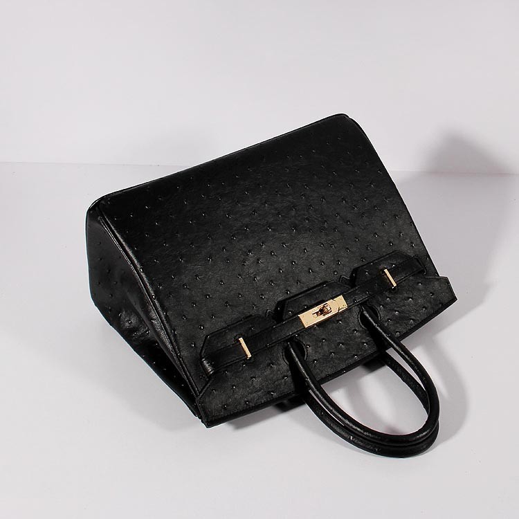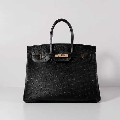 Hermes Birkin 35cm Bolso de piel de avestruz Oro Negro