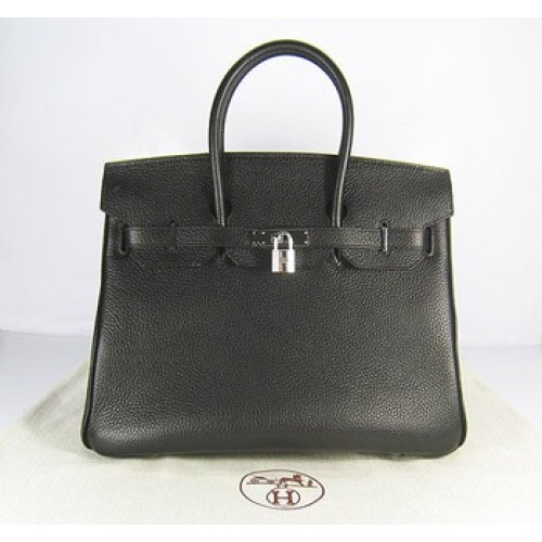 Hermes Birkin 35cm Togo cuero Bolsos negro plata