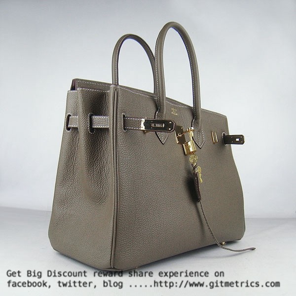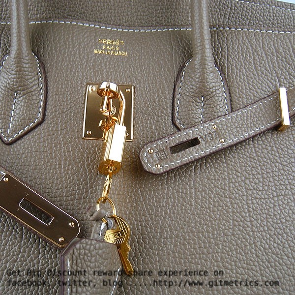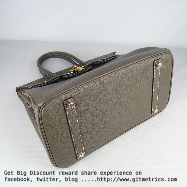 Hermes Birkin 35cm piel de ganado vena Bolsos caqui oscuro dorado