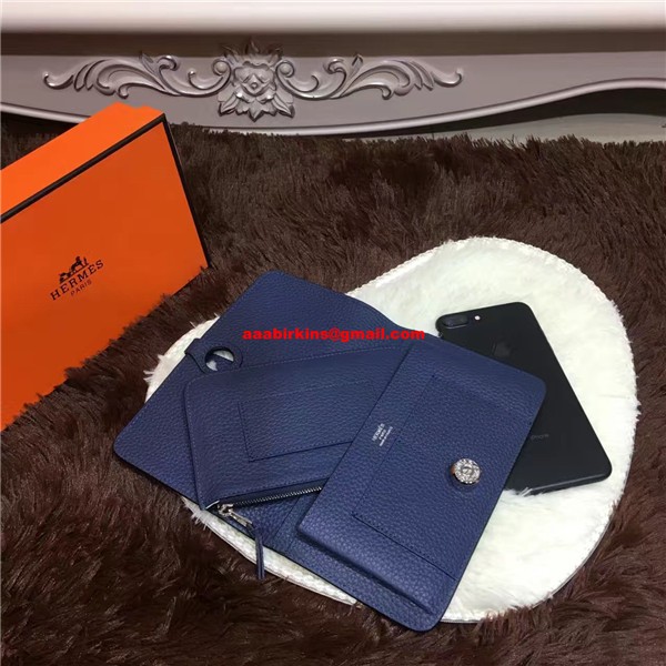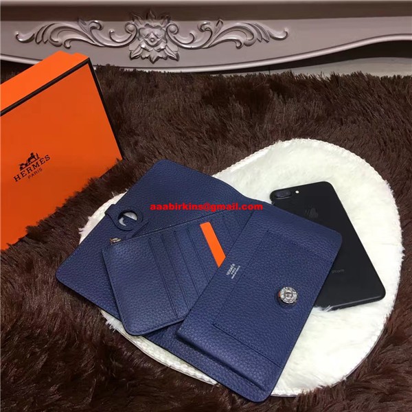 Cartera Hermes Dogon de piel de Togo H001 azul oscuro