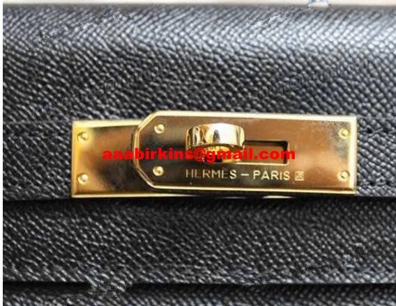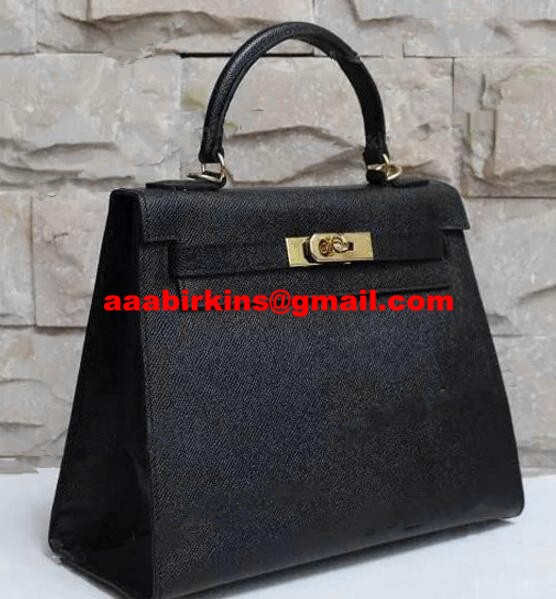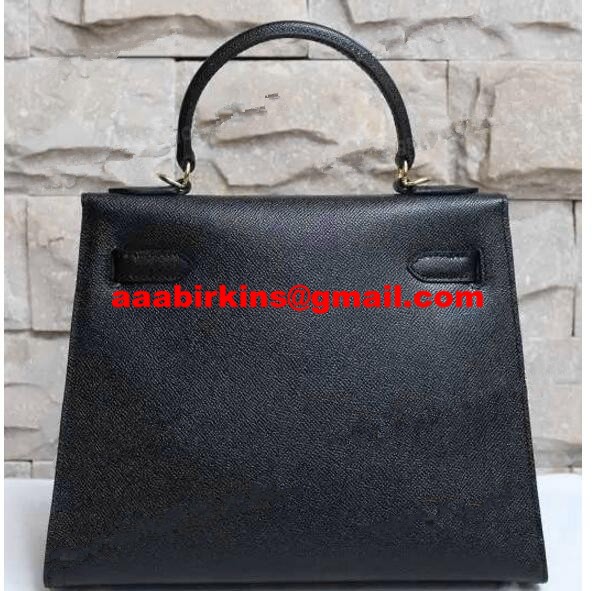 Hermes Kelly 28cm Bolso de cuero Epsom Negro Oro
