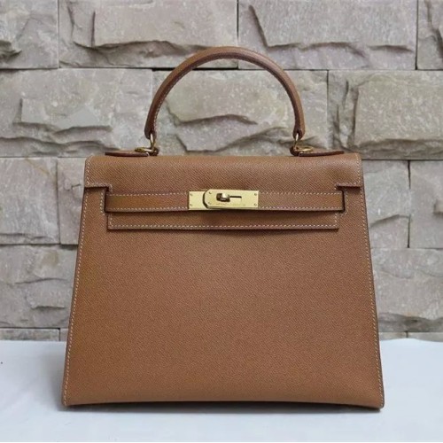Hermes Kelly 28cm Bolso de cuero Epsom Marrón Dorado
