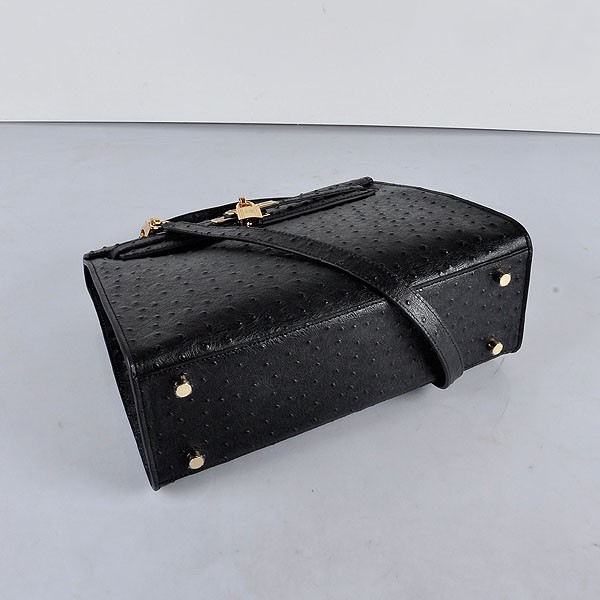 Hermes Kelly 32cm Vena de avestruz 6108 Negro Dorado