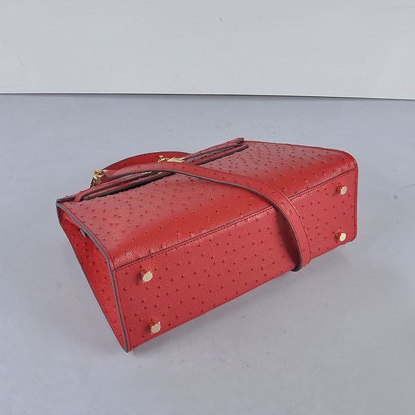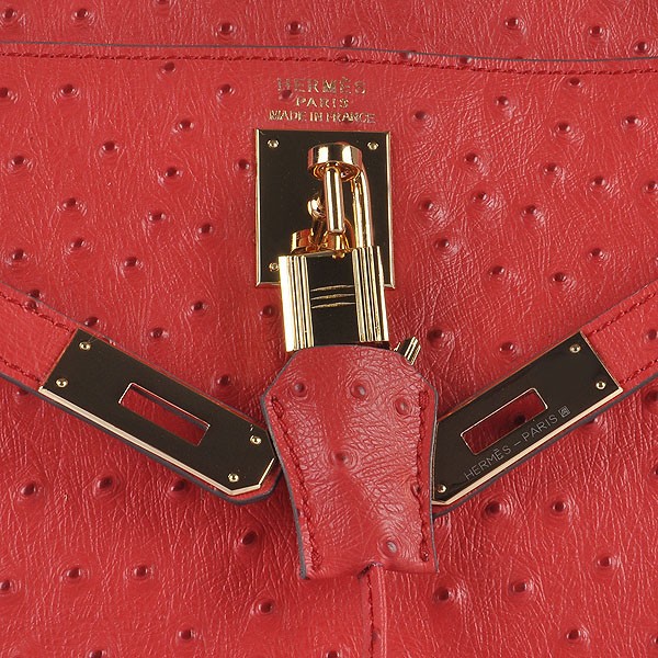 Hermes Kelly 32cm Vena de avestruz 6108 Rojo Dorado