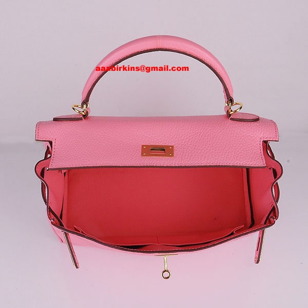 Hermes Kelly 32cm Togo cuero 6108 cereza rosa dorado