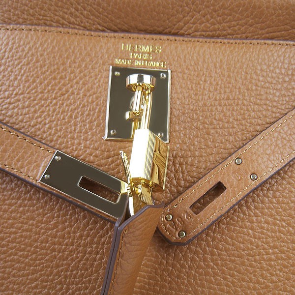 Hermes Kelly 32cm Togo cuero 6108 café claro dorado