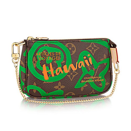 Capturando el espíritu del verano, la colección Resort 2017 de edición limitada combina el icónico Monogram Canvas con una interpretación audaz y brillante del estampado Tahitiennes adaptado de los archivos de Louis Vuitton. Ideal para guardar lo esencial, el elegante Mini Pochette Accessoires se puede sujetar a un bolso o llevar solo.