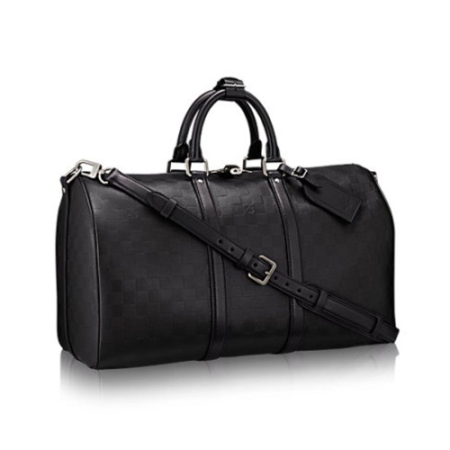 Descripción: El Keepall Bandouliere 45, en flexible piel Damier Infini, rinde homenaje a la herencia de Louis Vuitton. Se puede llevar al hombro o en la mano, y su icónica forma lo convierte en un elegante compañero de viaje. Tamaño: 45 cm x 27 cm x 20 cm (largo x alto x ancho). Características detalladas: Detalles de piel lisa, etiqueta para el nombre y cierre de asa. Herrajes de titanio satinado. Correa de hombro ajustable y extraíble. Bolsillo interior con cremallera y doble bolsillo plano. Anilla en D para llaves y accesorios. Forro de algodón suave. Todas las fotos son del artículo real. Todos los artículos incluyen una bolsa de compras de papel original de Louis Vuitton, una bolsa guardapolvo amarilla, número de serie, tarjeta de autenticidad, manual y etiqueta.