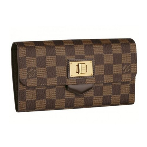 La billetera Rosebery en discreta lona Damier Ebene es la forma clásica de llevar efectivo, tarjetas y papeles. Con un audaz cierre giratorio de latón dorado y numerosos bolsillos, es tan práctica como elegante.
