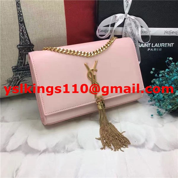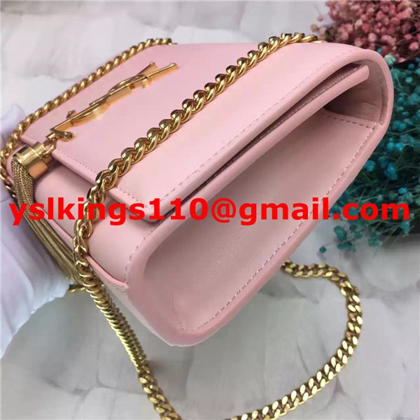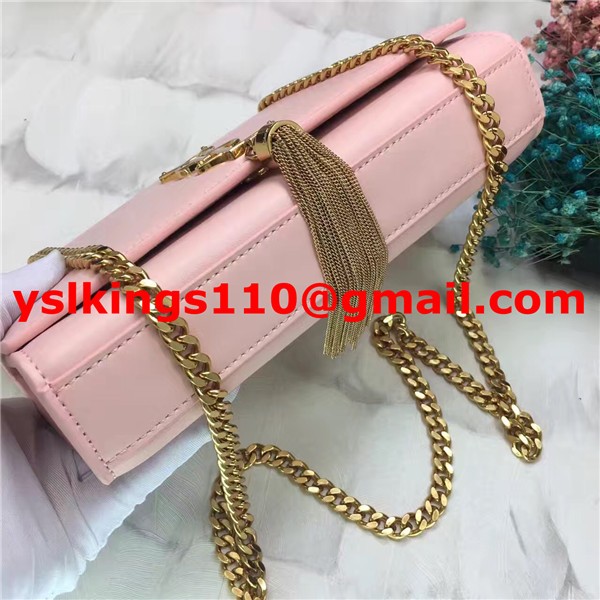 YSL Tassel Chain Bag 22cm Cuero Liso Oro Rosa Claro